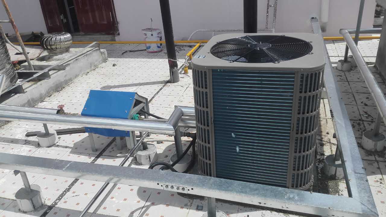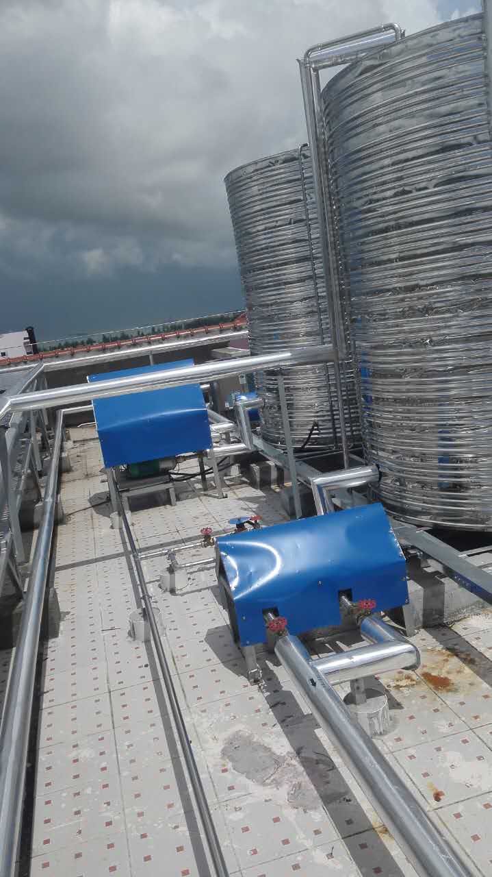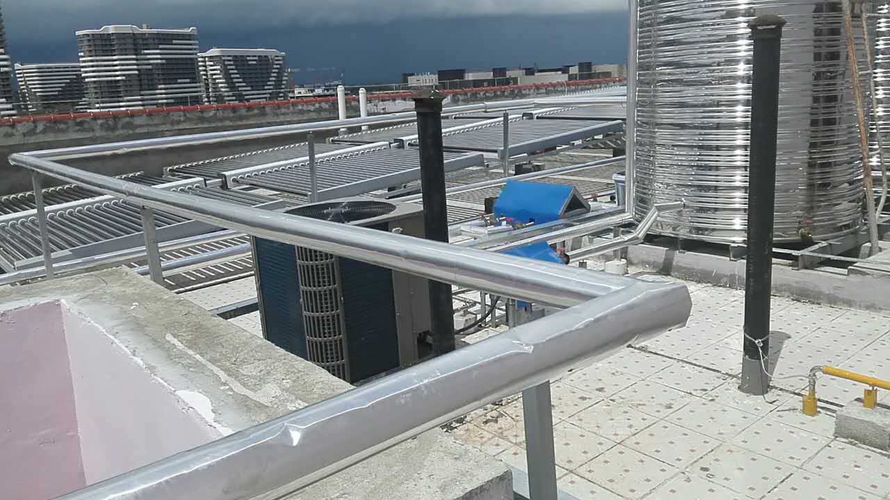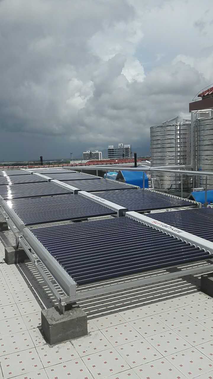 中興通訊有限公司人才公寓位于海南省三亞市崖州區創意產業園內,根據客戶要求,三棟小高層總施工了4套太陽能熱水系統,系統采用太陽能高效真空管太陽能集熱器,美的直熱循環式空氣源熱水,ABB控制系統,薄壁不銹鋼管等 國內知名品牌設備,藍冠高要求的精致施工,在太陽底下完美的顯現了太陽能的銀光刺眼。