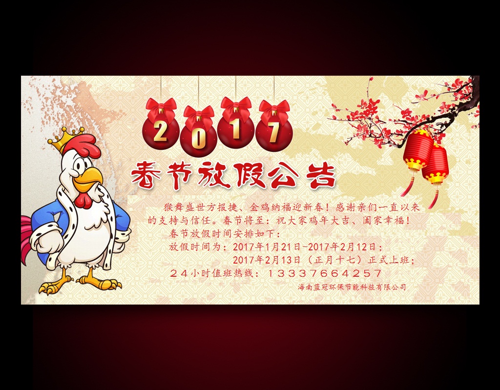 2017年春節放假通知!